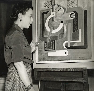 By the late 1950s Abstract Expressionism had swept Manhattan, flattening such nascent movements as Geometric Abstraction. Such artists as Stuart Davis, Stanton MacDonald Wright, George L.K. Morris, George Ault, Jan Matulka, Richard Leahy, Philip Guston and many others were eclipsed. Pereira believed that a European angst, brought to our shores in the wake of the Holocaust, had introduced a cynicism and a profoundly anti-female sensibility that boded ill for art in America. Rightly she pointed out that even when the works of women were acquired by museums they were rarely shown, a disgrace that persists to this day. The women who did achieve success, she said, were often collaborators with more famous male artists and tastemakers.