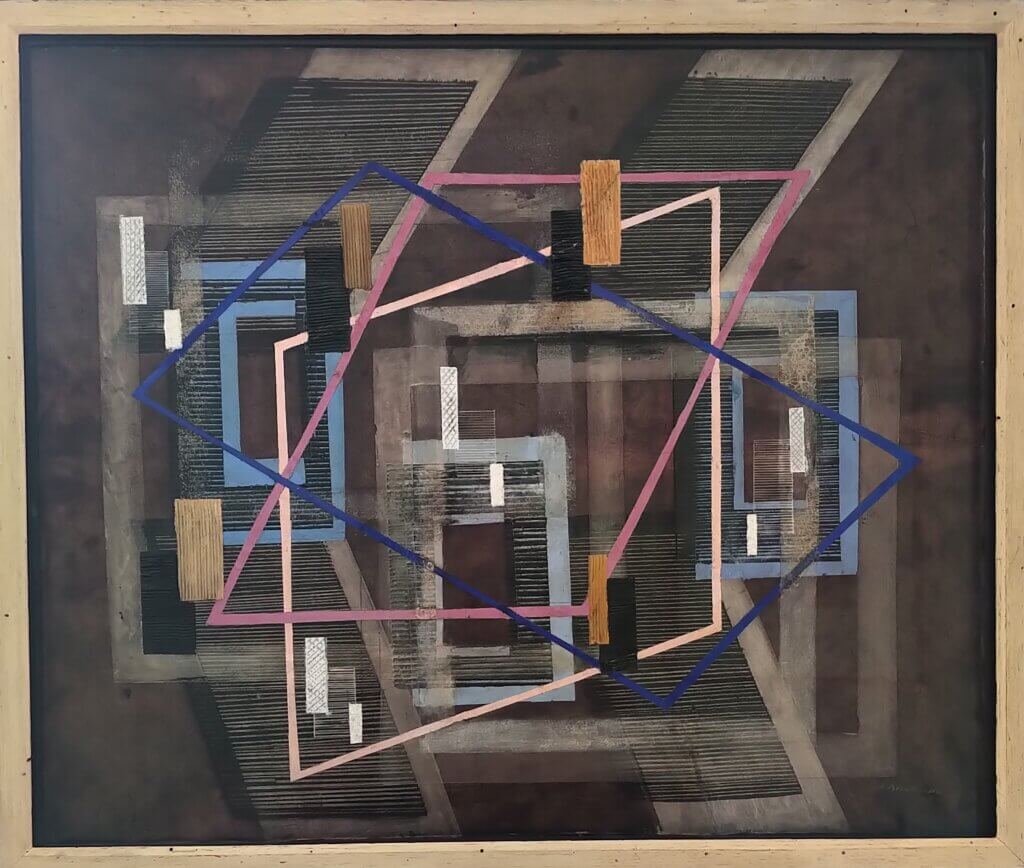 “Her work has a geometrical precision not usually associated with her sex. Still young, she has made phenomenal technical progress since she showed here almost a decade ago.” Washington Post, January 9, 1949.
