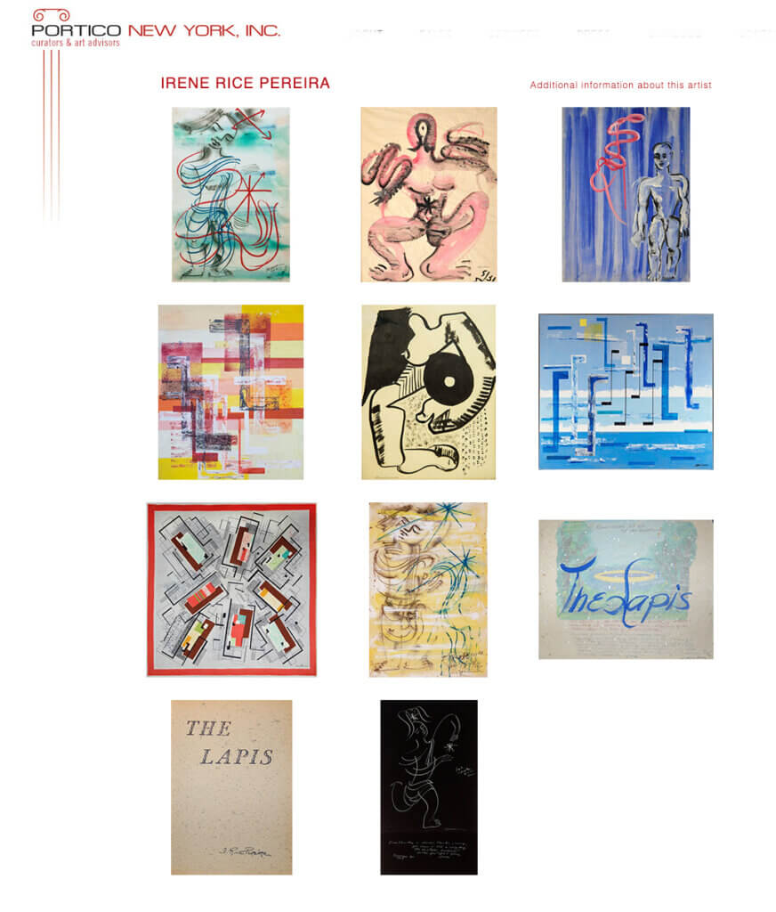 Champions of Modernism III, an exhibition of non-objective modernists, begins at Wendt Modern in Laguna Beach, California, May 9. Works by Pereira will be shown with works by Rudolph Bauer, Hilla Rebay, Rolph Scarlett, Seymour Fogel, Mary Ann Strandell, Xanti Schawinsky, Victor Matthews, Peter Vogel, Daniel Villenueve and Gary Stephan.